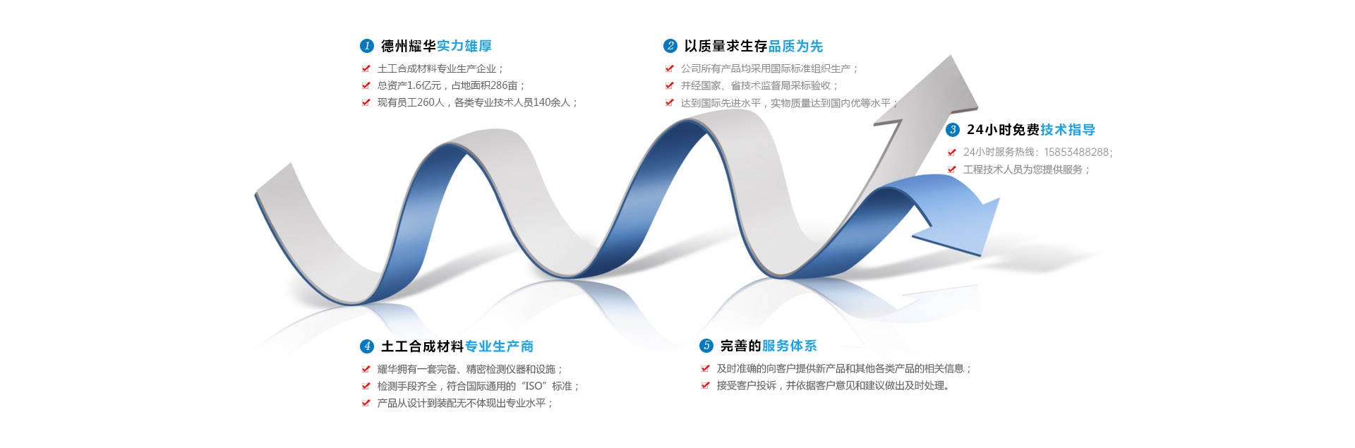 德州耀華土工材料有限公司是目前全國較大、品種其全的土工合成材料專業(yè)生產(chǎn)企業(yè),主要產(chǎn)品有復合土工膜、HDPE土工膜、長絲土工布、防草布、防水土工布、水庫防滲膜、防水板、生態(tài)袋、三維復合排水網(wǎng)、長絲機織土工布、EVA土工膜、無紡布、6.2m寬幅短纖針刺無紡布、6.0m寬幅土工膜、復合防水板、6.0m幅寬長絲土布等。本公司有年產(chǎn)萬噸滌(丙)短纖維兩用生產(chǎn)線、無紡布、PE防水板、復合膜等10余條生產(chǎn)線,工藝技術先進。HDPE土工膜、復合土工膜價格低廉...【更多】